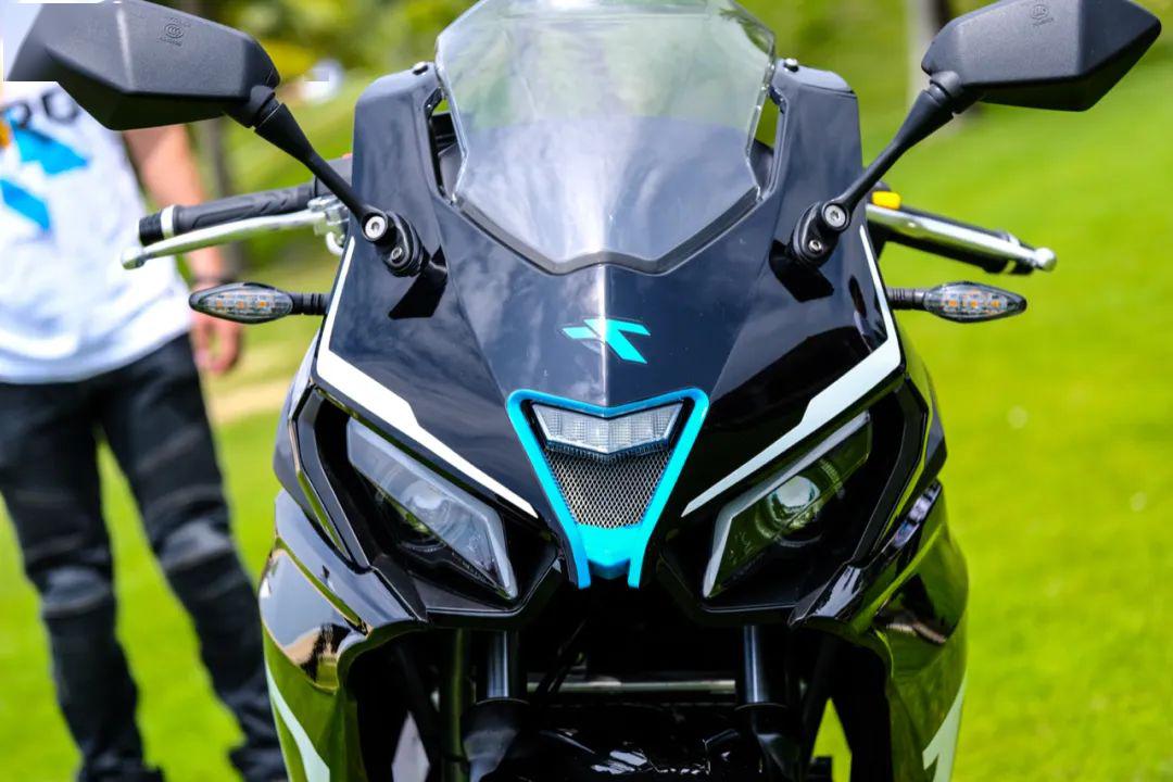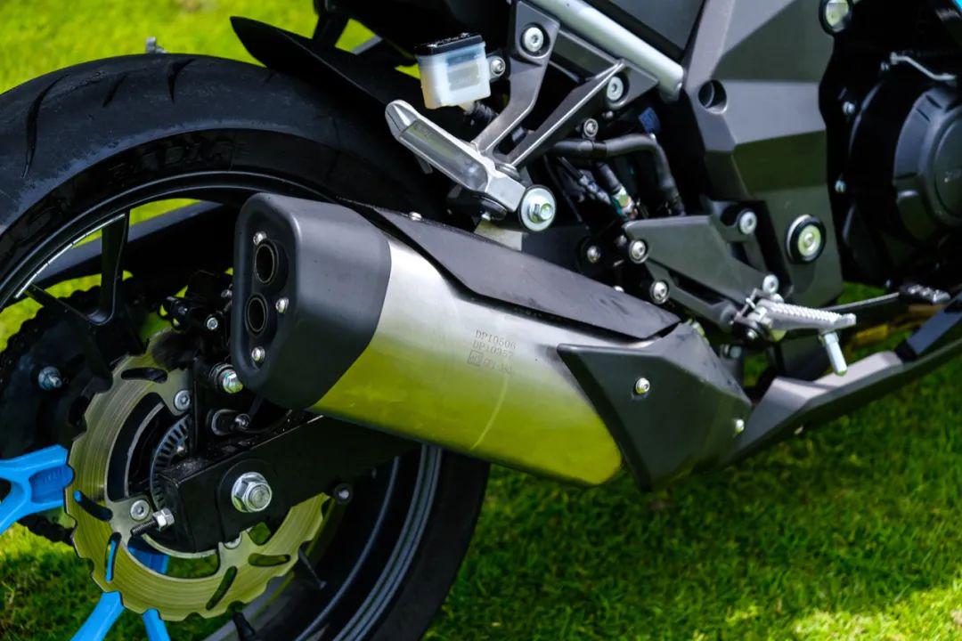 前雙盤、后單盤的制動(dòng)系統(tǒng),城市版配備了CBS,賽道版則配備了ABS,二者差價(jià)也僅為1000元。全車光源均為L(zhǎng)ED,前大燈為雙透鏡配置,節(jié)能的同時(shí)強(qiáng)化照明效果。儀表為自家生產(chǎn)TFT儀表,車輛信息一目了然。輪轂還別出心裁地涂了四分之一圈象征著品牌形象的藍(lán)色,動(dòng)態(tài)效果頗為炫酷。輪胎為前110/70-17,后150/70-17的正新輪胎。此外,該車還可選配快排系統(tǒng),那感覺(jué)就像——別人有的,咱也不能少。