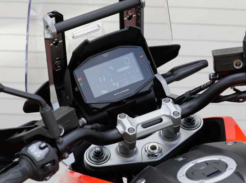V-Strom采用了與GSX-R1000 / R和Katana類似的單色LCD儀表,易于閱讀并充滿各種信息,包括基于1050XT的MSRP的顏色。顯示屏明亮,白天或晚上都易于閱讀,但是考慮到價格,彩色TFT的缺席令人遺憾。USB插頭位于儀表的左側(cè),可以非常方便的為手機充電,全LED照明進一步提升夜間的行車安全。