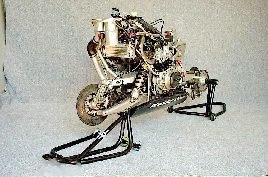 在 1983' WEC 賽季結(jié)束后,埃爾夫重新向最高級(jí)別的 WGP 發(fā)起了沖擊,使用 Honda 向他們提供了兩沖程 V 型三汽缸的 RS500 發(fā)動(dòng)機(jī),埃爾夫制作了被被外間稱之為 ELF 2(意為第二臺(tái) GP 原型賽車)的賽車。其有著一個(gè)與眾不同的設(shè)計(jì):常見的摩托車是以左、右控制轉(zhuǎn)向,而這款 ELF 2 是透過車把的前后移動(dòng)去實(shí)現(xiàn)轉(zhuǎn)向控制的,車頭部分有著一個(gè)相對(duì)復(fù)雜的結(jié)構(gòu)。