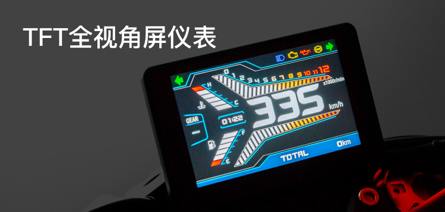 在儀表方面,無論是儀表內(nèi)的界面設(shè)計布局,還是尺寸大小,基本上和貝納利最新款的黃龍600保持一致。
