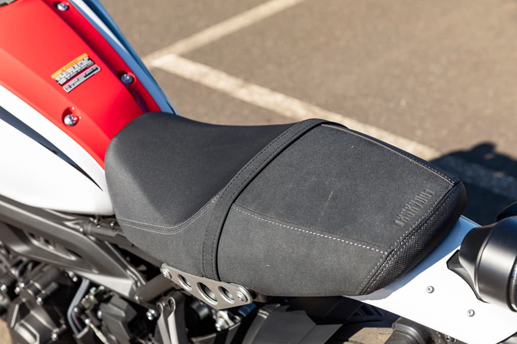 830毫米的座椅高度偏高于街車,但XSR900的中部纖薄,優(yōu)雅的座椅采用對比色縫線和浮雕'XSR900'徽標(biāo),油箱和座椅結(jié)合處有意收窄。這意味著對于大多數(shù)人來說,在靜止?fàn)顟B(tài)下放下雙腳應(yīng)該沒有太大的挑戰(zhàn)性。