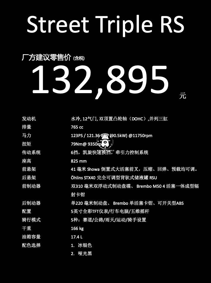 凱旋Triple RS 765國內上市 售價132,895元人民幣