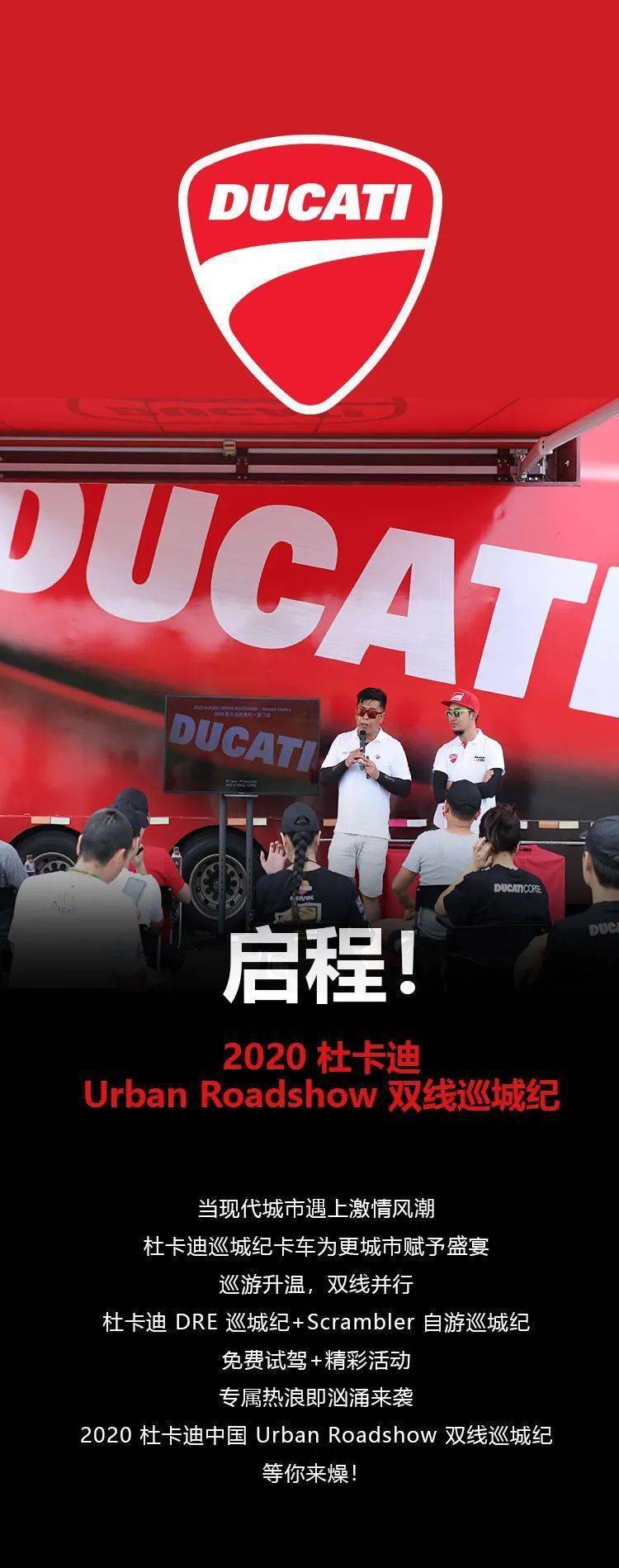核心提示:2020 杜卡迪中國 Urban Roadshow 雙線巡城紀開啟杜卡迪紅色大卡車又來了!2020雙線巡城紀開啟!啟程!2020 杜卡迪Urban Roadshow