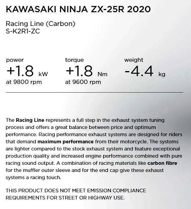 此外,著名的排汽系統(tǒng)改裝品牌 Akrapovic “ 蝎子 ”,早前也發(fā)布了兩款適用于 Kawasaki Ninja ZX-25R 的改裝排汽系統(tǒng)。