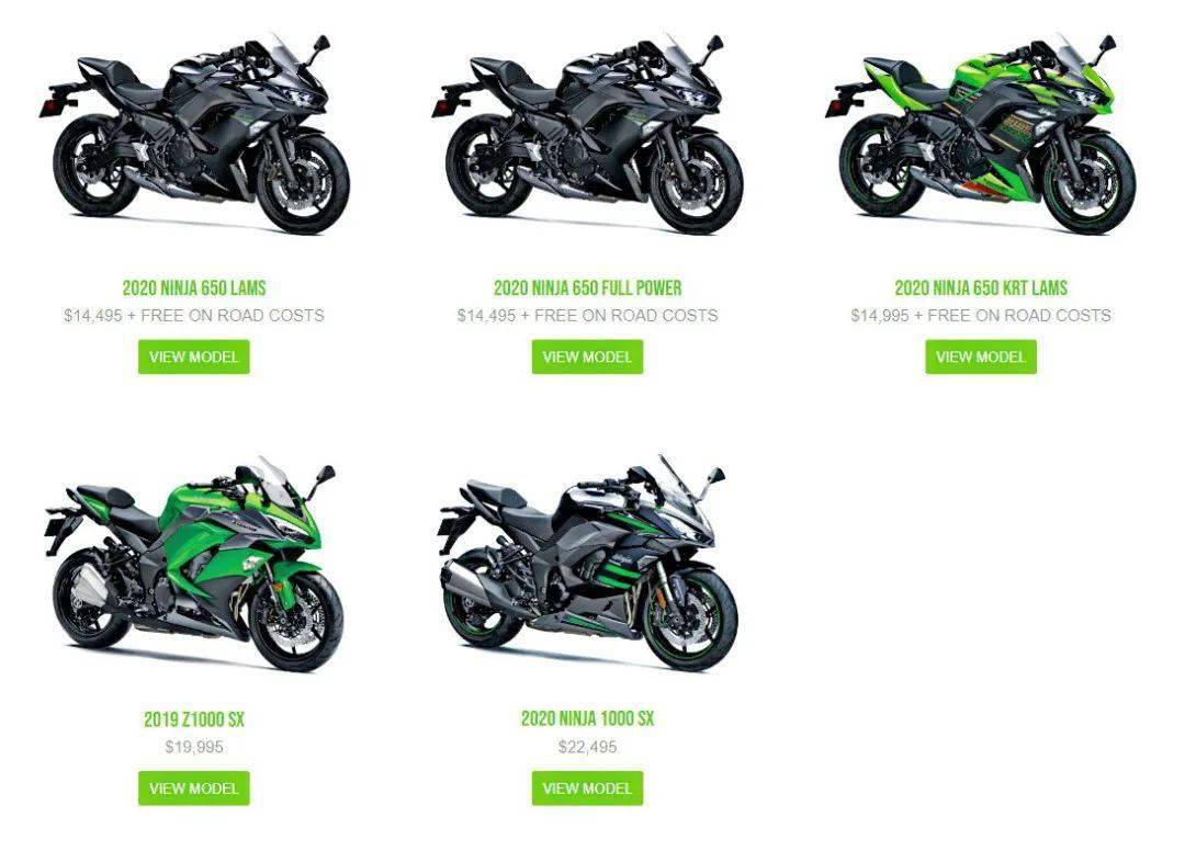 下面的圖片,Kawasaki 在新西蘭當(dāng)?shù)氐牟糠周?chē)型售價(jià)。