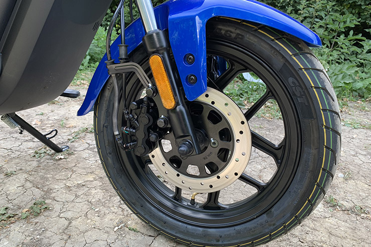 前后盤式制動(dòng)器相連(RHS桿操作前制動(dòng)器的三分之二,而LHS桿操作后制動(dòng)器和前制動(dòng)器的三分之二),在你需要快速停車時(shí)非常有力,但是有足夠的感覺,在正常使用中,你甚至都不會(huì)考慮它。盡管軸距短,車輪小,但UQi在強(qiáng)力制動(dòng)下仍然穩(wěn)定,沒有安裝ABS,但是即使在艱難地測(cè)試剎車時(shí),我也沒有錯(cuò)過。