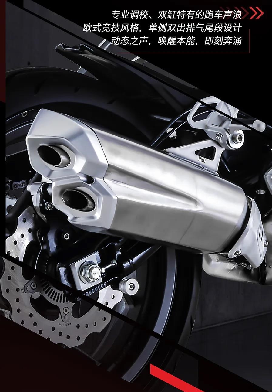 包括排氣管的造型,同樣是與老款一致,最最重要的是,同步雙缸發(fā)動(dòng)機(jī)帶來(lái)的“中國(guó)好聲音”,擁有國(guó)產(chǎn)同級(jí)最動(dòng)聽的聲浪,太多車友都是因?yàn)檫@個(gè)慕名而來(lái)。