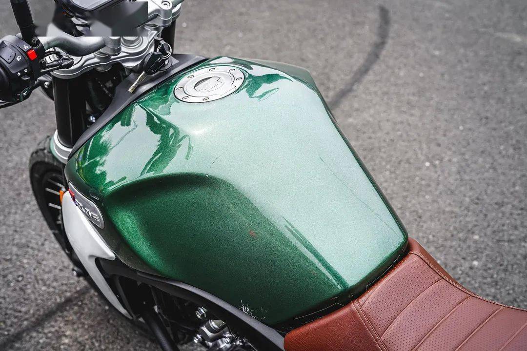 18L的綠色油箱寬大好夾持,測(cè)試車(chē)沒(méi)有加裝防滑貼,做動(dòng)作還是難以固定身體,車(chē)輛續(xù)航在400公里左右,無(wú)論街道還是長(zhǎng)短途使用都沒(méi)問(wèn)題。