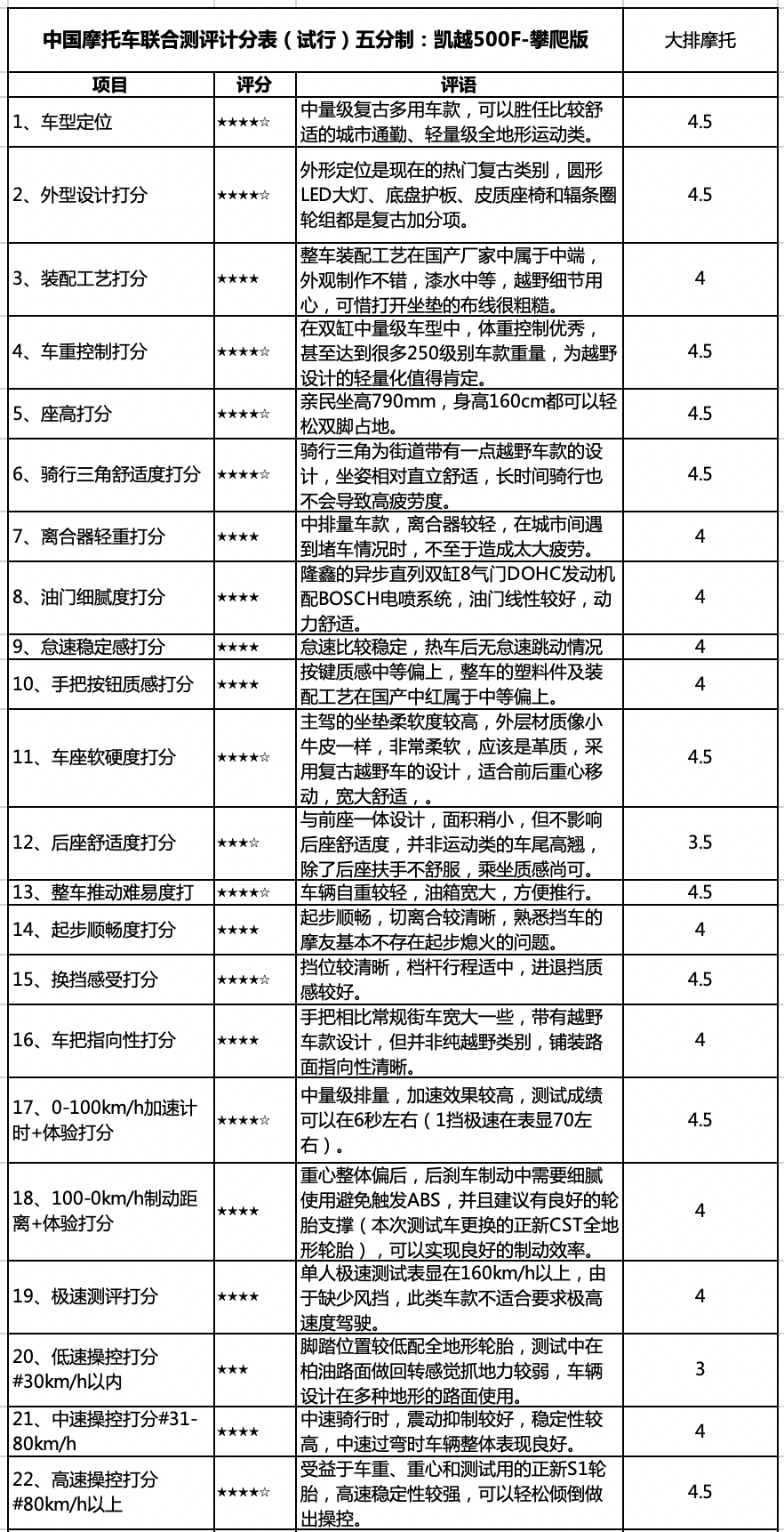 凱越500F-攀爬版 綜合評(píng)價(jià)