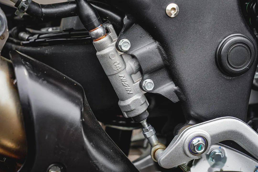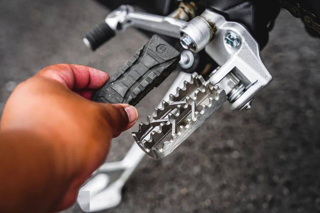 曾經(jīng)的真空輻條圈是高端象征,現(xiàn)在凱越已經(jīng)能在國(guó)產(chǎn)車(chē)實(shí)現(xiàn)原廠標(biāo)配,對(duì)于外觀和非鋪裝路面都是一種優(yōu)勢(shì)。凱越500F的腳踏組還有細(xì)節(jié)驚喜:原廠檔桿是可折疊類(lèi)別,而且腳踏組的緩震膠質(zhì)可以隨時(shí)移除,讓你在顛婆路面有更好的雙腳固定效果,引擎底部的護(hù)甲也是源自越野設(shè)計(jì)。