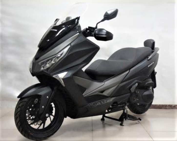 又一款250級大踏板即將上市,來自大陽摩托的這臺大踏板顏值挺高,整個設計雖然有些光陽賽艇的影子,但是好在總體上看起來比較舒服。原車配備的風擋面積很可觀,但是手把護手和乘客靠背則需要選裝。