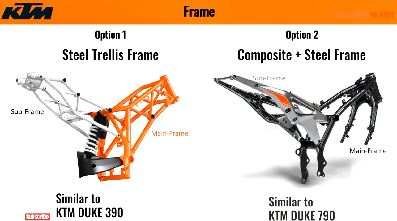 車架的選擇可能會在390與790之間做出,也很有能結(jié)合這兩個車架的優(yōu)勢重新設(shè)計,790的設(shè)計更加激進,輕量化設(shè)計以及強度方面比起390都要強得多。