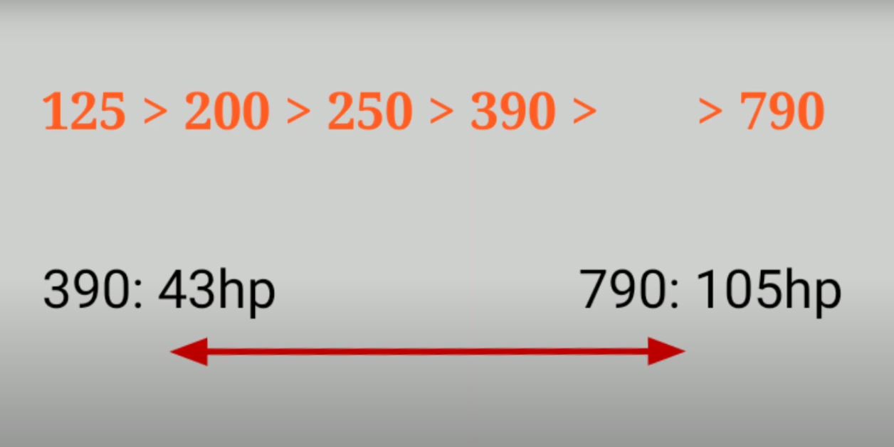 KTM為什么要推出490系列?上圖可以清晰的看到,KTM在390與790之間有著巨大的排量斷層,而目前500cc級別細分市場和650cc細分市場逐漸火熱,中量級領(lǐng)域的競爭也越來越激烈,所以KTM迫切需要加入這場戰(zhàn)斗,擴充自身產(chǎn)品陣容的同時,彌補在這個斷層的車型缺失。
