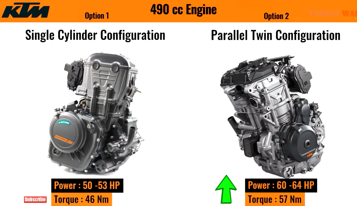 490系列的發(fā)動機將面臨兩種選擇,也是單缸和雙缸的抉擇,從消費者的角度來看,肯定更加偏愛雙缸發(fā)動機,而如果選擇單缸發(fā)動機,那么和390系列的差異將被無限拉近。相反,如果KTM在490系列上搭載雙缸發(fā)動機,對于所有這個排量段的其他車型,將會造成極大影響。而國外媒體的預(yù)測,490的發(fā)動機性能如上圖所示,如果是單缸性能就和本田CB500相似,如果是雙缸必將稱霸這個級別。