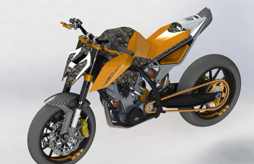 因為驗證車的樣子是完全按照概念設(shè)計來打造,設(shè)計圖上的490系列采用的也是雙缸的設(shè)計(下圖)。截止目前KTM僅僅推出了Duke的驗證車,但是當初KTM公布的新車計劃當中,490系列包括490Duke、490Adv、RC 490、490 SMC R和490 Enduro R。