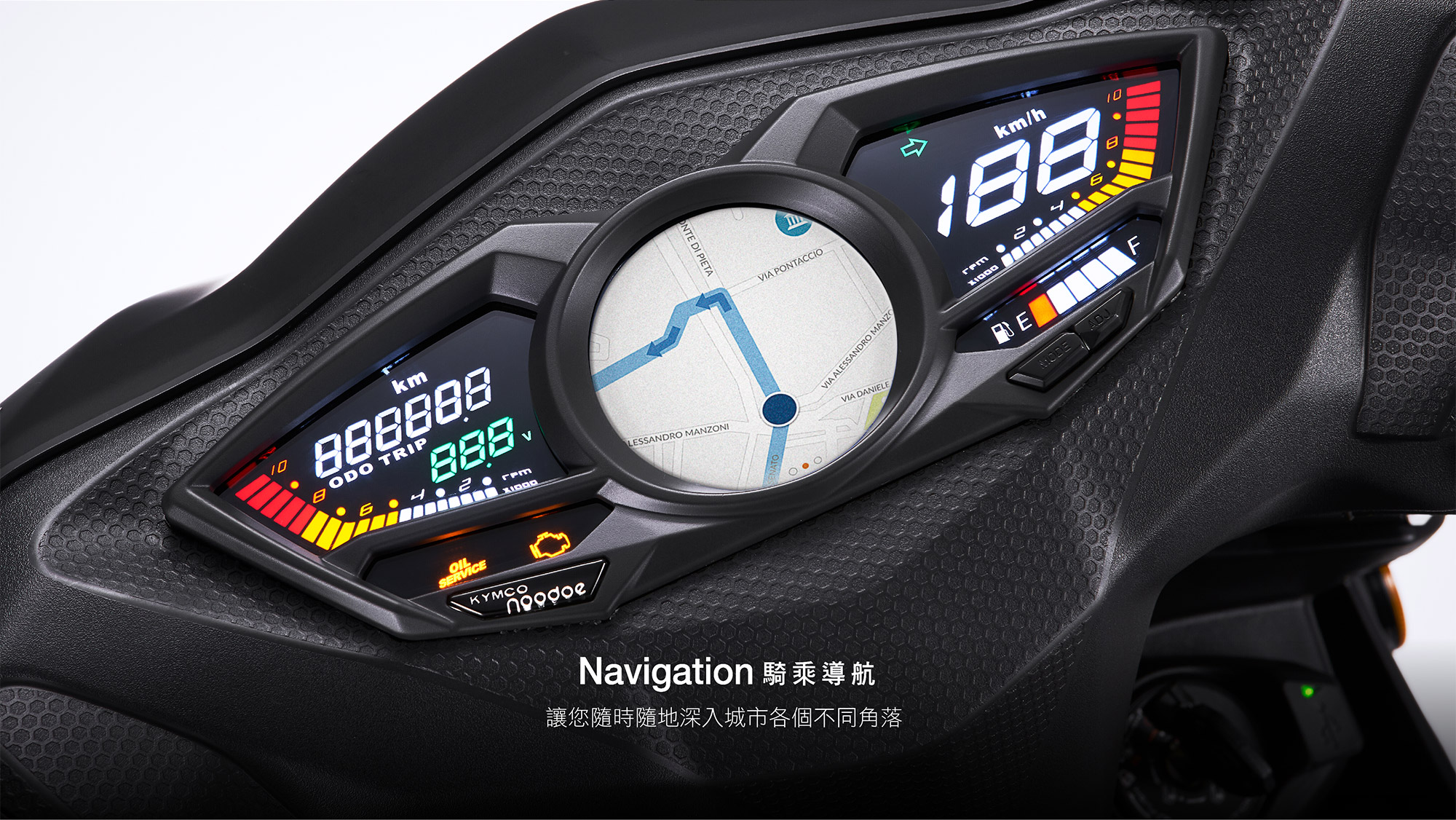 在儀表上可以自定義背景,還能顯示你正在進(jìn)行的APP內(nèi)容,對騎行最有幫助的還屬專用導(dǎo)航系統(tǒng)!再也不用為安裝手機支架而焦慮,更加避免了手機攝像頭被震壞,或者手機摔爛的尷尬局面。