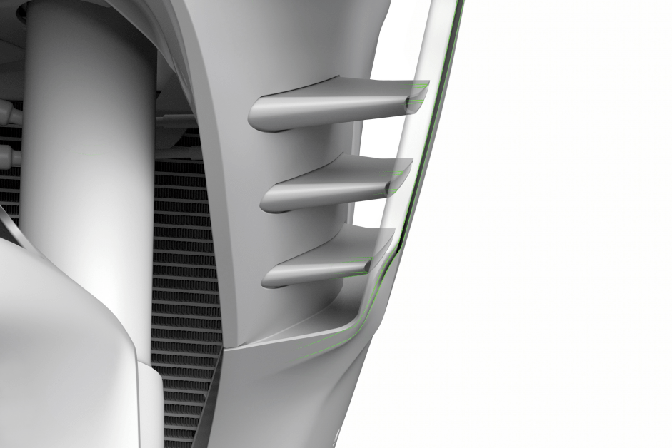 空氣動力學性能變得更加出色,因為本田賽車隊將RC213V的智慧結晶傳遞給CBR1000RR-R:導流罩上配置了精心設計的定風翼,增加了下壓力,同時優(yōu)化了制動穩(wěn)定性;得益于油箱高度降低了45mm,騎手的駕駛位置更加緊湊;前擋泥板的形狀作了精細調(diào)整,將前輪處的氣流引導至側導流罩……經(jīng)過一系列的優(yōu)化設計,CBR1000RR-R的風阻系數(shù)降低到0.27!