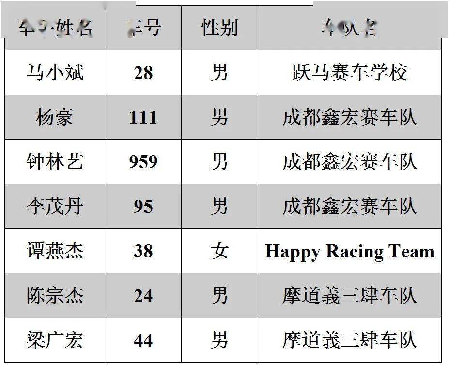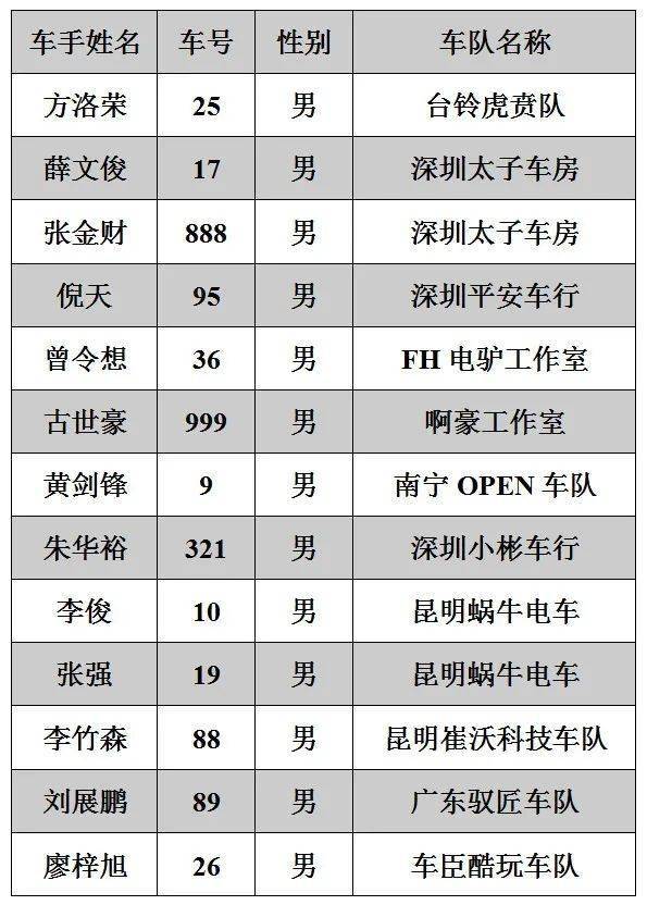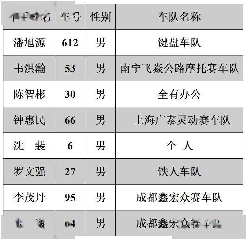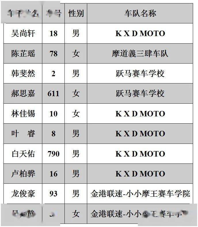 2020年三水偉業(yè)達(dá)杯摩托車大賽——第一回合參賽名單