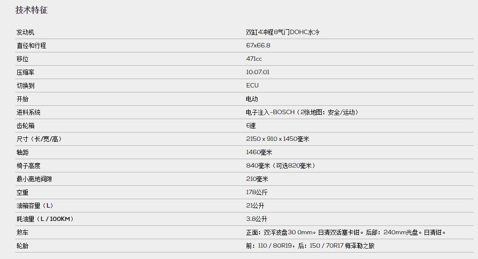 Montana XR5,搭載的是一款471cc排量的發(fā)動機,很顯然這臺發(fā)動機就是隆鑫的KE500,整車的配置和規(guī)格應(yīng)該與國內(nèi)車型相差無幾,除了價格比國內(nèi)售價高之外,哪怕?lián)Q了一個標依然能夠一眼就能認出。