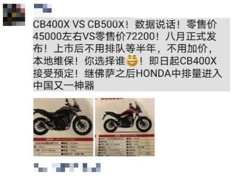 而該截圖明確表明,繼佛薩(Foraz)之后,中排量進入中國的又一神器,那么問題來了Foraz進來了嗎?年初傳的沸沸揚揚的說Foraz將于7月上市,現(xiàn)在可曾有任何消息?目前本田唯一官宣的新車只有Rebel500,F(xiàn)oraz都沒有進入國內(nèi),何來繼Foraz之后?此時你還會覺得這個截圖有可信度嗎?