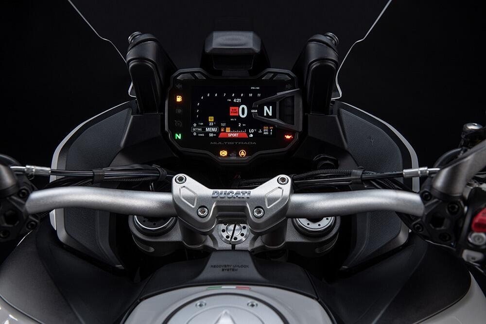 在2021款S版本中,Multistrada 950配備了創(chuàng)新技術(shù),可提供安全性和駕駛樂(lè)趣:配備杜卡迪Skyhook懸架Evo(DSS)系統(tǒng)的電子懸架,杜卡迪快速升降(DQS),全LED投影儀配備杜卡迪轉(zhuǎn)向燈(DCL),5英寸TFT彩色顯示屏,免提系統(tǒng),巡航控制和背光車(chē)把控制以及博世ABS轉(zhuǎn)向燈,可提高車(chē)輛的主動(dòng)安全性。