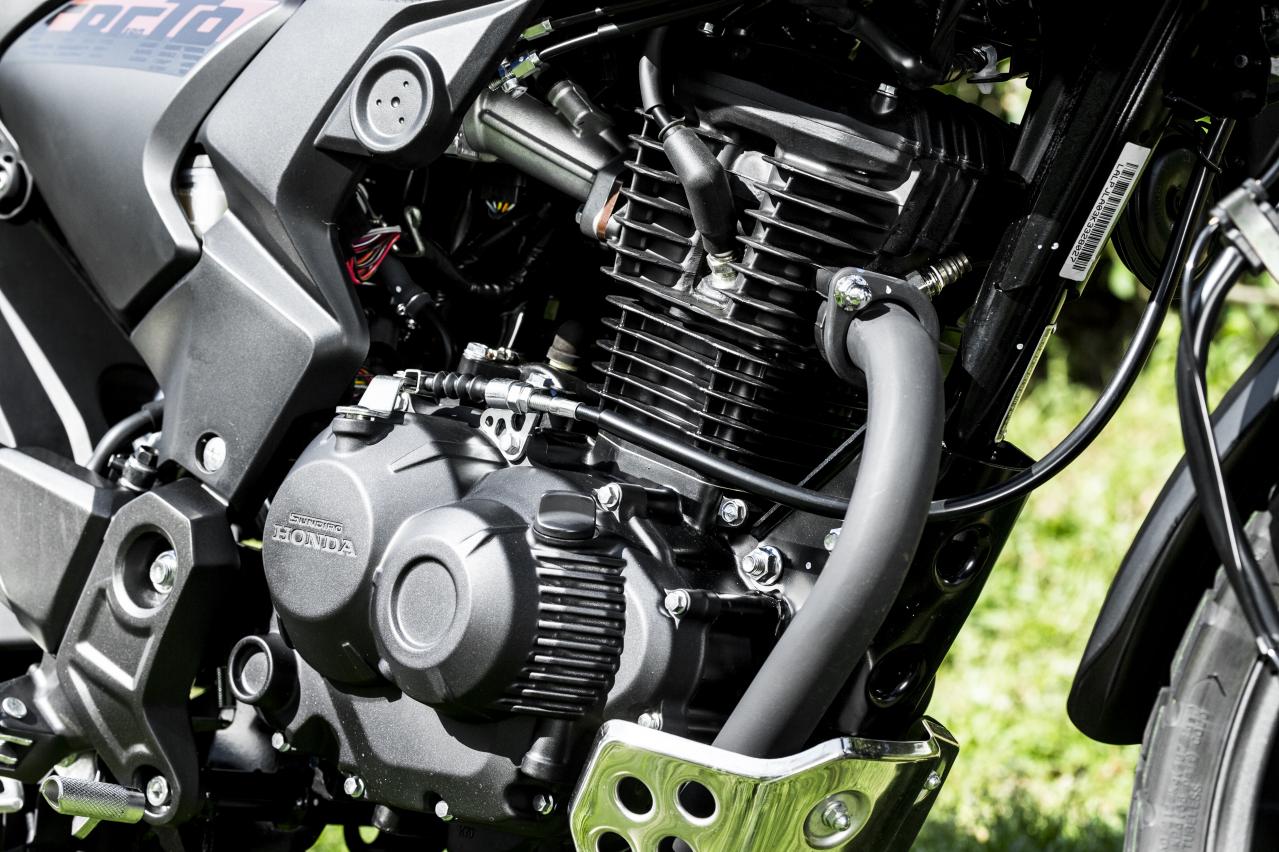 排量184.4cc的單缸風冷發(fā)動機我們已經(jīng)非常熟悉和CB190R同款,最大功率12.4kw/8000rpm在,最大扭矩16.3Nm/7000rpm。從低速到中等速度動力輸出非常平順,強調中速范圍扭矩的風冷發(fā)動機非常平穩(wěn),幾乎沒有振動和機械噪音,并且具有易于在街上操作的特性。只不過搭配的是5速變速箱略顯不足,好在發(fā)動機的扭矩表現(xiàn)出色。