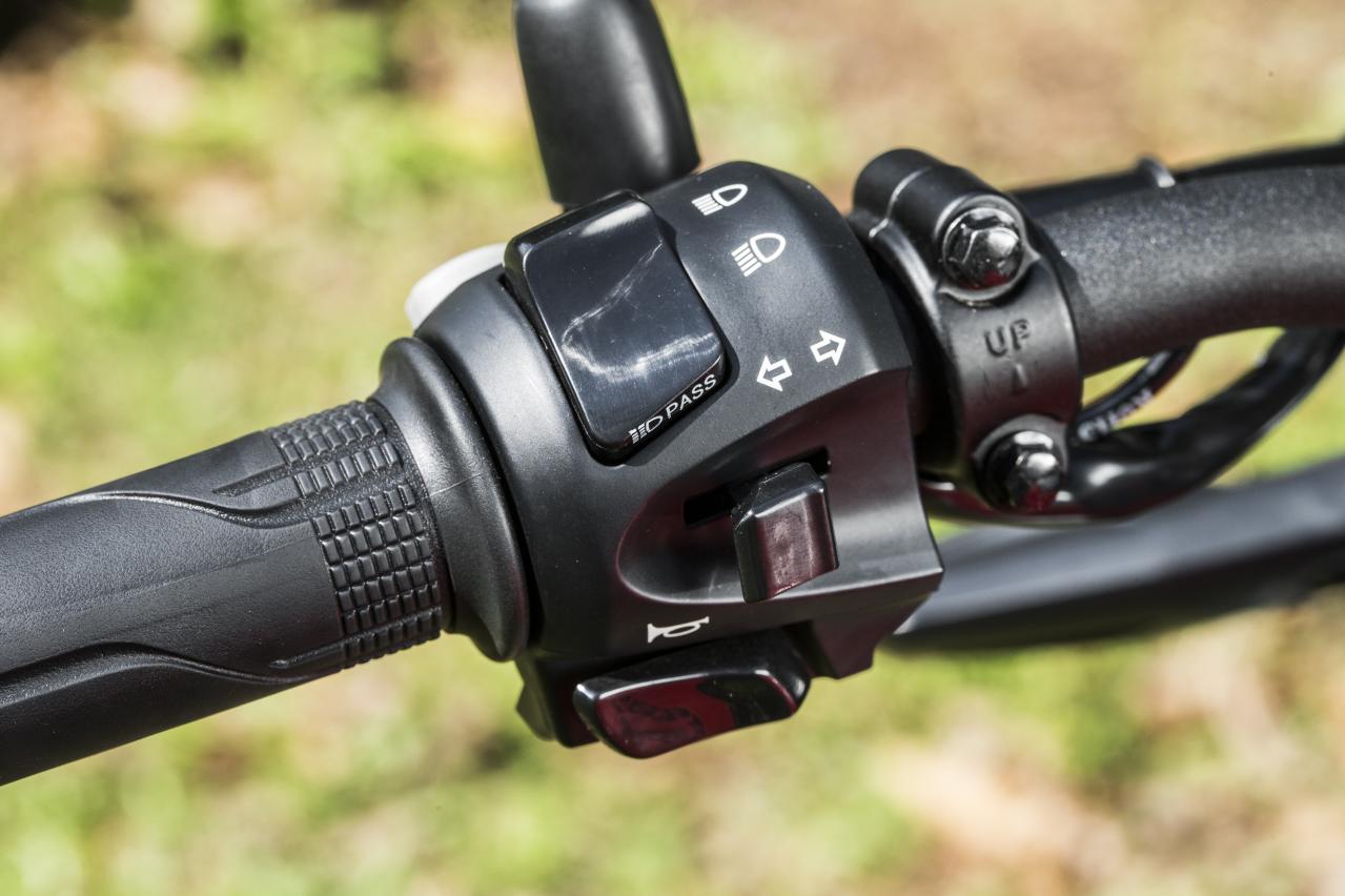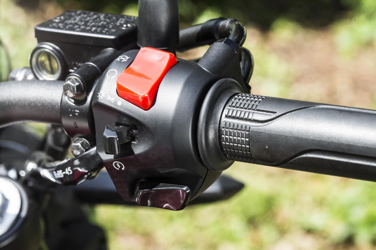 右側的開關盒有一個緊急熄火開關,開/關燈以及一個啟動按鈕。