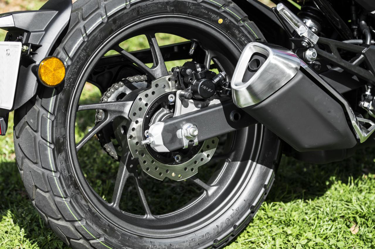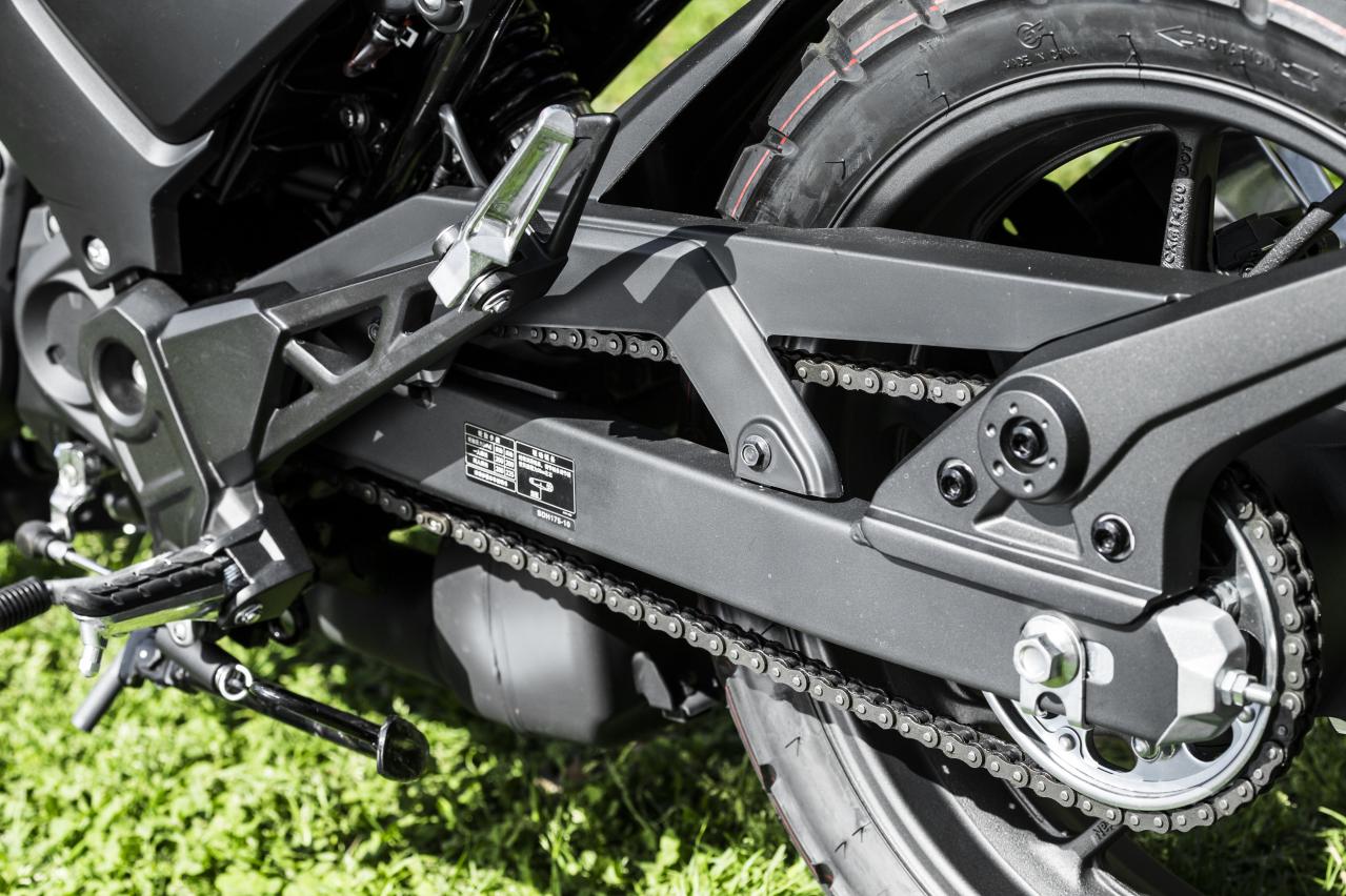 后搖臂是鋼制方管狀,這在合資與進口小排量摩托車上屢見不鮮。