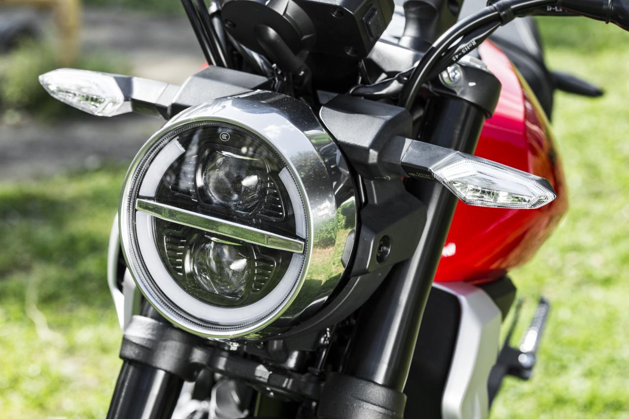 由于整車設計采用了Neo sports cafe的風格,所以圓燈的設計從中分開是必備的元素之一,也因此前大燈具有獨特的光照切線。