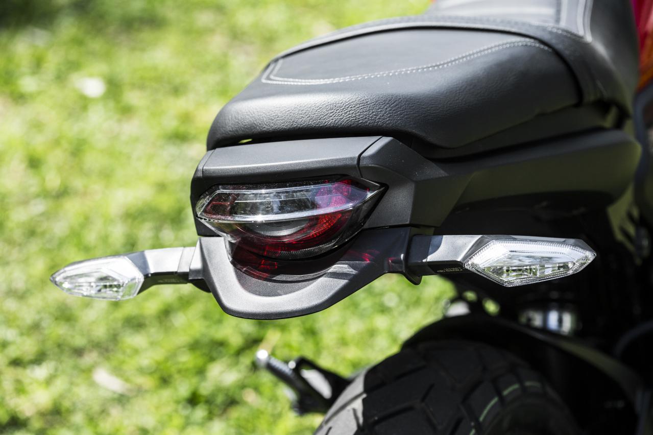 座椅后面安裝了尾燈和轉向信號燈,由于后擋泥板和牌照安裝在擺臂上,因此座椅的后端看似設計簡潔,但是有點突兀。