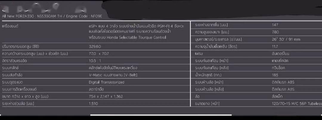 外觀方面基本和Forza 300保持一致,只是在一些細(xì)節(jié)上比如轉(zhuǎn)向燈以及車頭處進(jìn)行了重新設(shè)計(jì)。最大的變化還是動(dòng)力,泰國(guó)本田對(duì)于這款車的定位就是對(duì)標(biāo)雅馬哈XMAX 300,所以動(dòng)力上肯定會(huì)有所加強(qiáng),SOHC 4氣門水冷eSP發(fā)動(dòng)機(jī)的缸徑x沖程從原來(lái)的72mm x 68.6mm增加到了77mm x 70.7mm,隨之而來(lái)的是排量從原來(lái)的279mL增加到了329.6mL。目前官方并沒(méi)有公布動(dòng)力參數(shù)信息,但猜測(cè)會(huì)和XMAX 300動(dòng)力數(shù)據(jù)(20.6kW,29N·m)持平或更高。