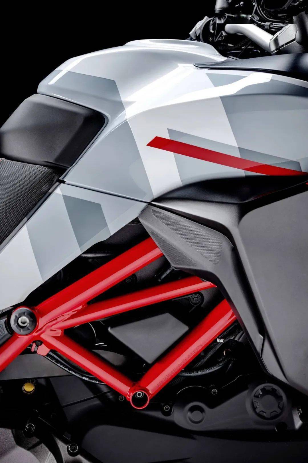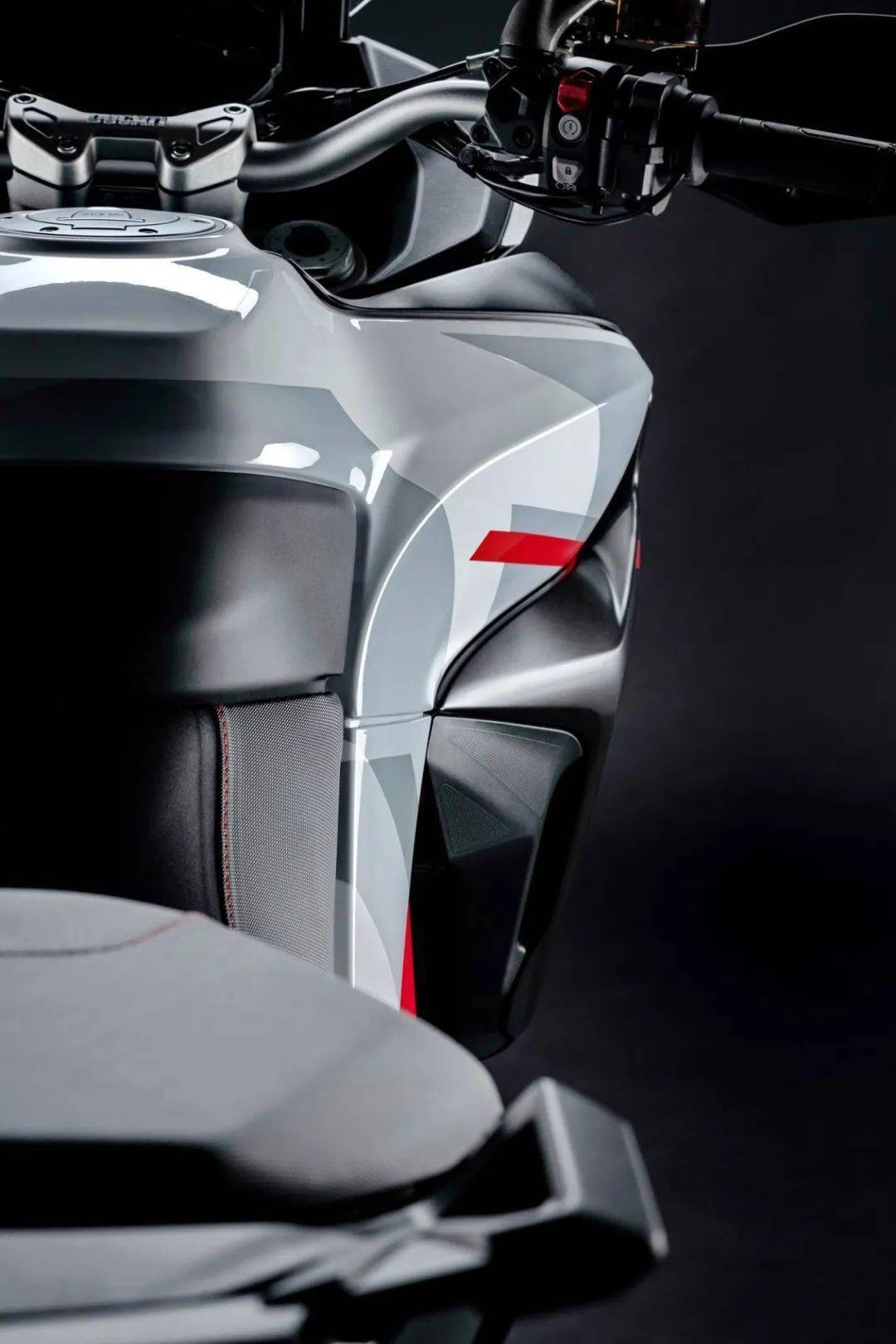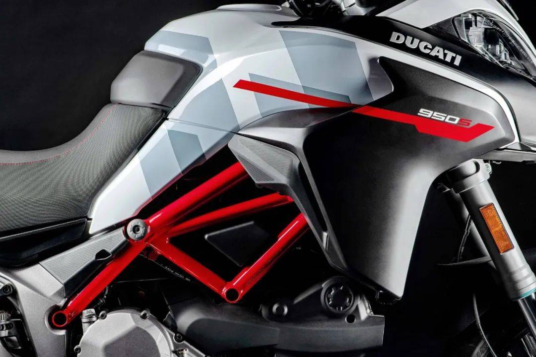 新的 GP 白的設(shè)計靈感來自杜卡迪的 MotoGP 圖案,一個基于白色和灰色交替的配色方案,并在車體的一些細(xì)節(jié)部分(例如車架和合金車輪上的色彩)中、采用標(biāo)志性的杜卡迪紅作配襯。廠方稱,這個新圖案能為 Multistrada 950S “ 攬途 ” 原本就已經(jīng)充滿運(yùn)動性的造型、增加更多視覺上的沖擊。