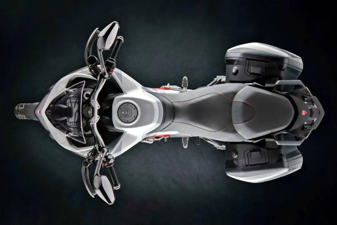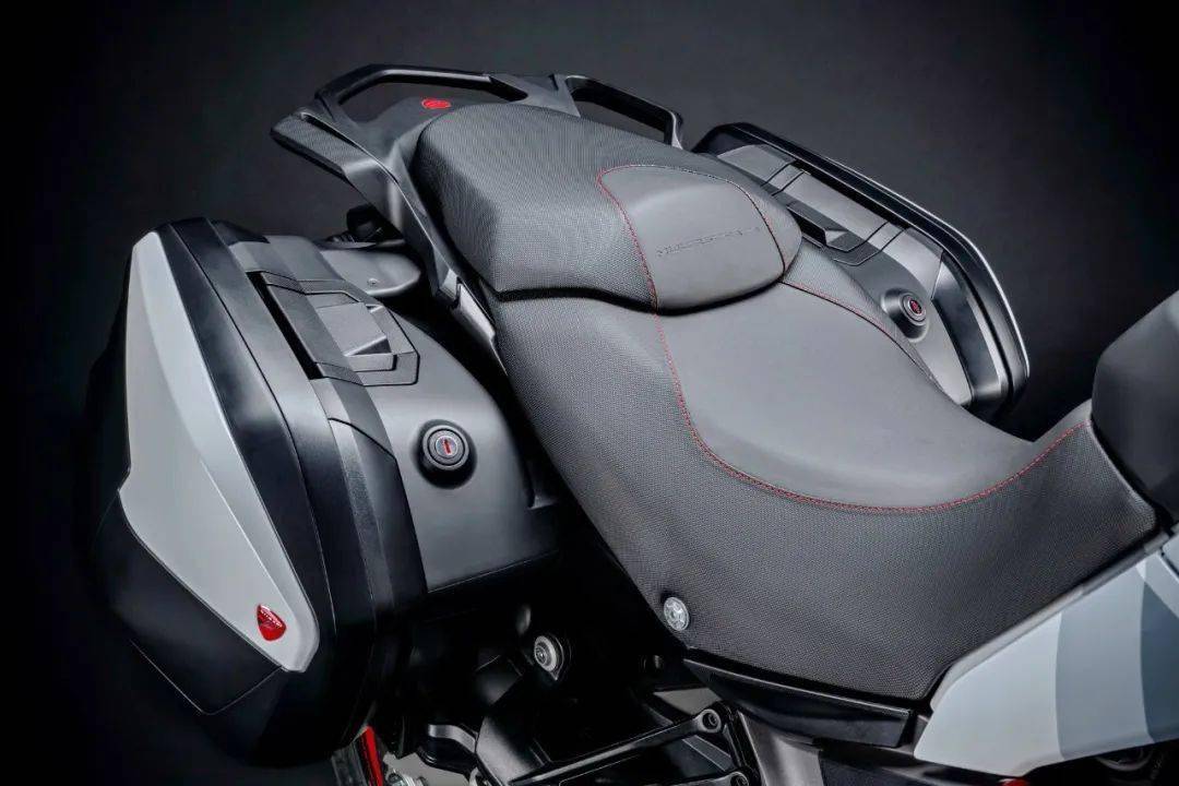 下圖:配備了原廠后邊箱的 Multistrada 950S “ 攬途 ” GP 白。