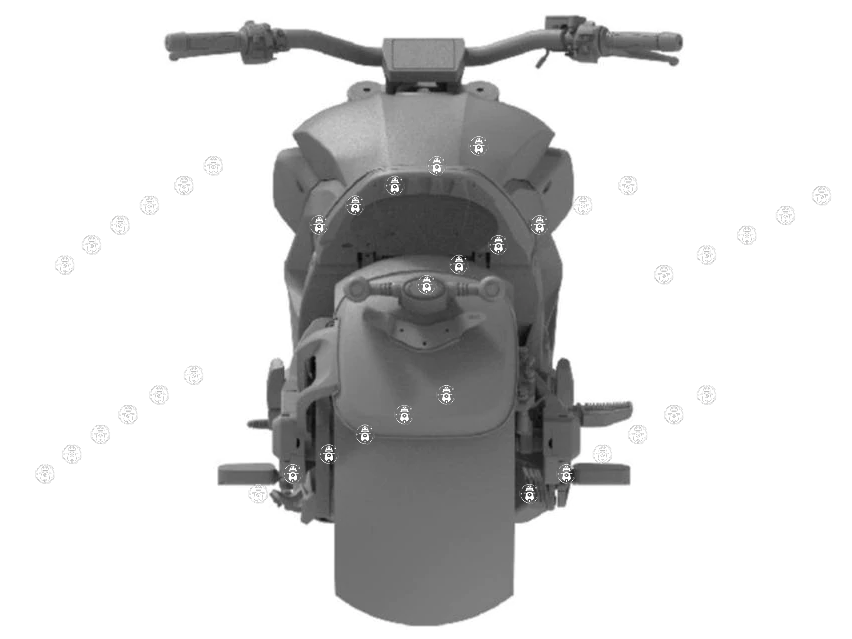 排氣裝置的設(shè)計非常有趣,該排氣裝置的特點是一個安裝在腹部的收集器/消音器,在右側(cè)的下方帶有四個獨立的排氣口。概念摩托車可能具有這種設(shè)計,但是在量產(chǎn)車型上能否保留還真不好說。大燈的設(shè)計也比較適合概念車,在傳統(tǒng)圓形設(shè)計的基礎(chǔ)上,渦輪狀副LED的中央設(shè)有一個主LED燈泡,這種格外夸張的設(shè)計很難保留到量產(chǎn)車上。此外還有更多的LED用于轉(zhuǎn)向信號燈,前部的轉(zhuǎn)向燈似乎在油箱兩側(cè)進氣口的前邊緣,而后部的轉(zhuǎn)向燈在牌照架上。