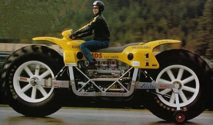這位瑞典發(fā)明家Tom Wiberg,其實早在1999年的時候就曾經(jīng)以「世界最大的摩托車」創(chuàng)下世界紀錄,當時他使用一具Jaguar V12引擎搭配上耕耘機輪胎,打造出這臺「Bigtoe」越野車,這臺超狂的Bigtoe更是在2011年的一場拍賣會上,以88,000美元的價格天價賣出。