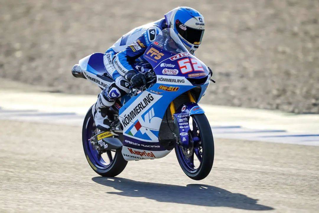 昨天(七月 18 日)進行的 Q2 排位賽,福建友力企業(yè)所支持吉斯尼(Gresini)Moto3 車隊,駕駛 52 號車的新秀、西班牙車手阿科巴(Jeremy Alcoba)在 Q2 的最后一圈跑出了 1 分 46.091 秒的最快圈速,最后排在了正賽的第六位發(fā)車。這是阿科巴在 Moto3 里、目前為止的最佳排位成績。