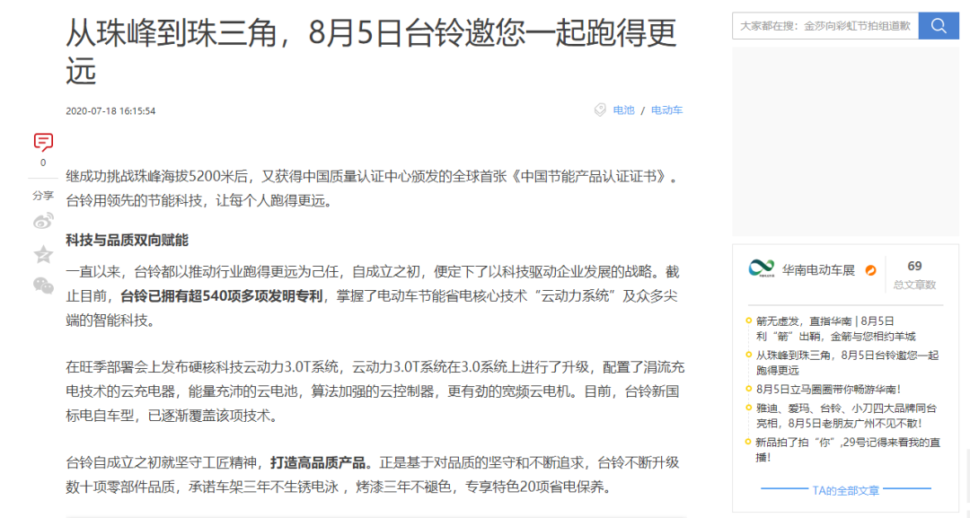 核心提示:2020第五屆華南國際電動(dòng)車及零部件展覽會(huì)8月5-7日在廣州保利世貿(mào)博覽館3-4號(hào)館舉辦持續(xù)全媒體宣傳目前,組委會(huì)已經(jīng)完成今日頭條