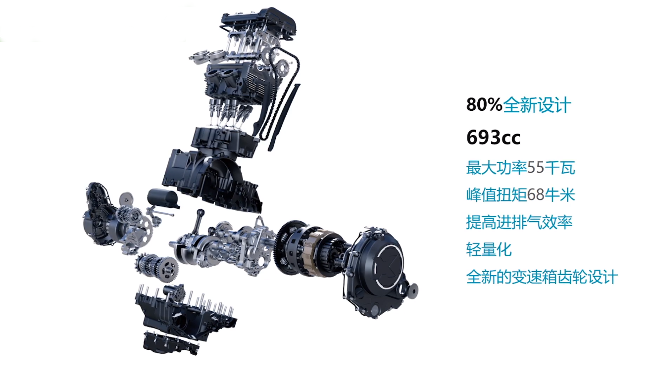 關(guān)于發(fā)動(dòng)機(jī)這一塊,廠家也在發(fā)布會(huì)現(xiàn)場(chǎng)做出了解釋,雖然外觀有點(diǎn)像650NK的發(fā)動(dòng)機(jī),但是這并非是650單純擴(kuò)缸而來(lái),改動(dòng)幅度達(dá)到80%,廠家表示單純的擴(kuò)缸是無(wú)法達(dá)到55Kw和68Nm的輸出水平,內(nèi)部做了不少的改動(dòng),包括不少鍛造件的加入。