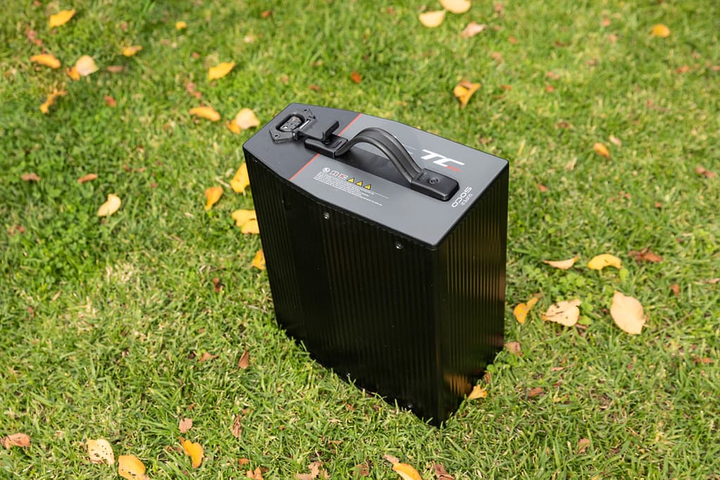 為TC Max電池充電很容易,好處是,可以取出電池,帶進(jìn)家里充電過夜。你也可以準(zhǔn)備兩組電池輪換使用,更換電池也很容易,但是由于電池很重,所以拆卸和更換電池有點(diǎn)麻煩。