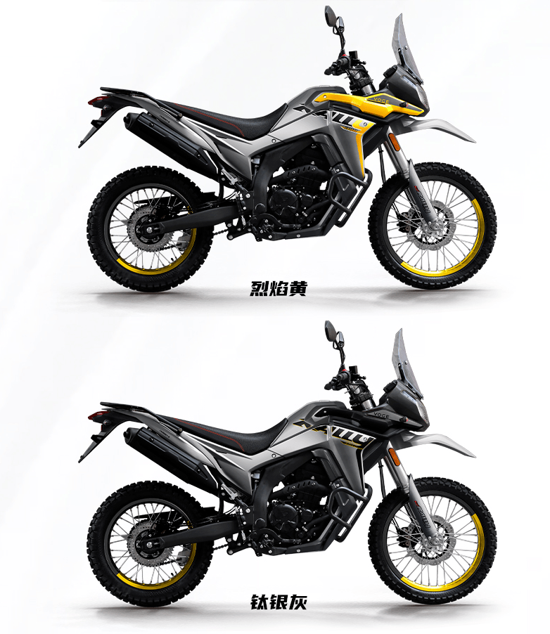 先來看看這兩款中呼聲最大的300GY RALLY,為什么?筆者認為有以下幾點,首先是選車觀念上的轉(zhuǎn)變,普普通通的公路休旅車或者是又大又重的ADV車型無法滿足部分騎手林道、穿越、非鋪裝摩旅等使用需求,而場地越野車又無法滿足上牌上路的條件,由于公路越野兩用車這一細分車型逐漸被大家所接受。其次,目前市面上可以選擇的公路越野兩用車型真是少之又少,一只手可以數(shù)完,其中大廠的產(chǎn)品也只有豪爵的NK150,不過排量略小更適合新手入門。在這樣的情況下,300GY RALLY的出現(xiàn)則很很好的填補了這個市場的空白。再者300GY RALLY筆者認為可以當(dāng)做本田小飛雙CRF 250 RALLY的平替版本,雖然在減震、輪轂搭配等配置上有較大差距,但可以通過改裝來優(yōu)化,而且即便小飛雙真的進入國內(nèi),這種車型大家都是去野的,動不動幾百幾千的維修費用也不是所有人都能承受得起,國產(chǎn)車便宜的優(yōu)勢反而能夠更放心的去豁。