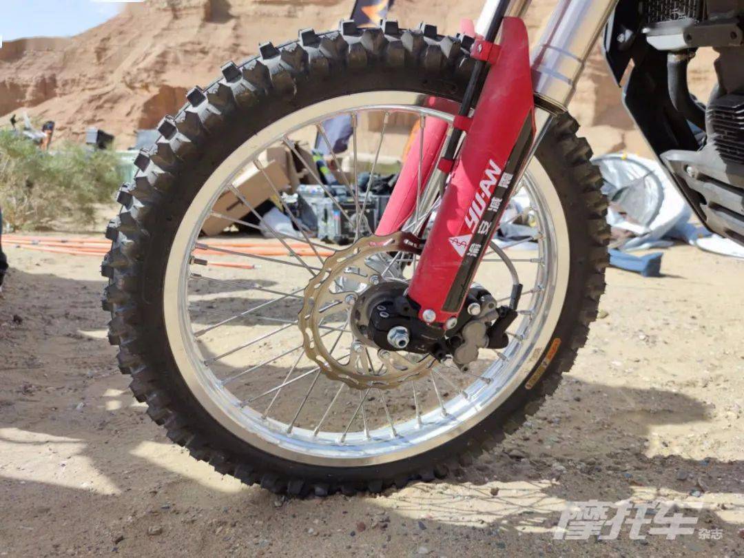 值得一提的是,現(xiàn)場還展出了一臺準(zhǔn)備今年參加環(huán)塔拉力賽的300GY戰(zhàn)車,該車有著前21后18的輪轂搭配,前減震行程達到340mm,后減震行程也在200mm以上,同時座高也來到了980mm,目前改裝尚未完成,但路書盒、拉力表等配件也已安裝完畢,完全是在原車的基礎(chǔ)上進行改裝的。另外廠家表示,這個版本的輪轂減震等配件可能會推出官方改裝件,另外這臺賽用高功率版的YF300發(fā)動機未來兩年內(nèi)可能會推出民用版。