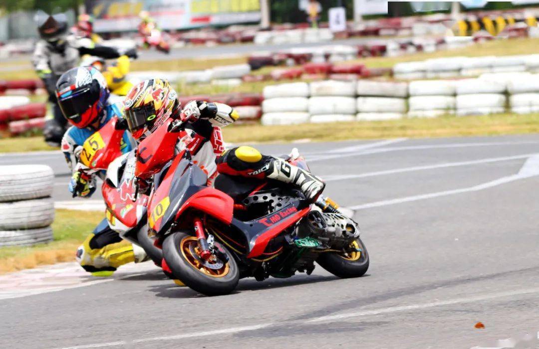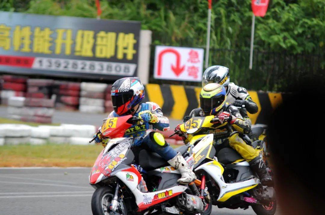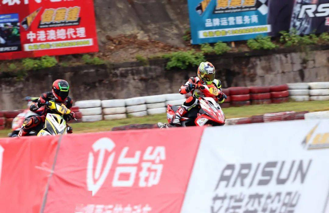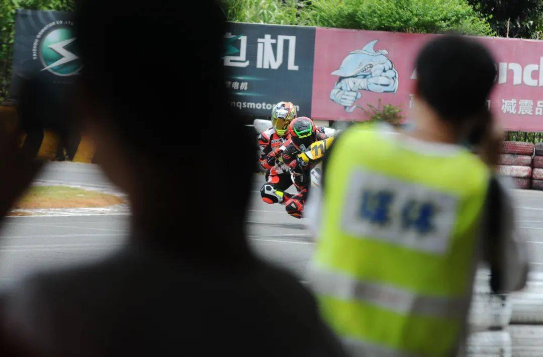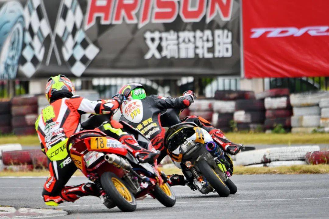 后面同樣是精彩迭起,起步之后排在第四位的倪天摔了一跤、重返跑道之后掉到了后面的第三集團(tuán)。第二集團(tuán),7 號(hào)車(chē)的陳澤凱與隊(duì)友、21 號(hào)車(chē)的吳華斌,兩人在跑道上并駕齊驅(qū)。