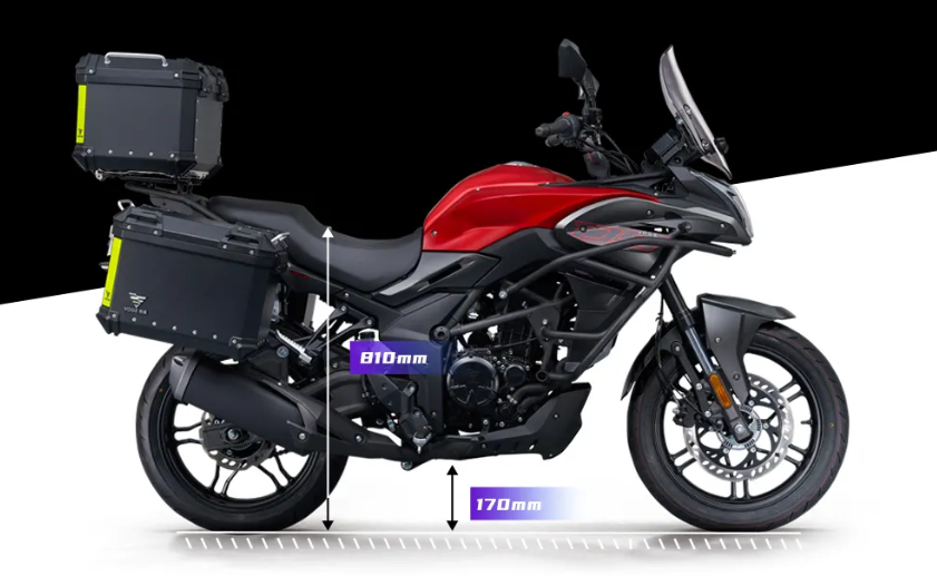 無(wú)極300DS擁有170mm的最小離地間隙,以及810mm的座高,兼顧了城市通勤與非鋪裝路面的行駛特性,不會(huì)顯得特別硬派,但是又能滿(mǎn)足一定的爛路行駛需求。