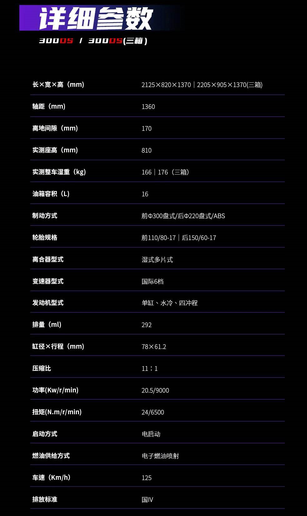 無(wú)極300DS規(guī)格表