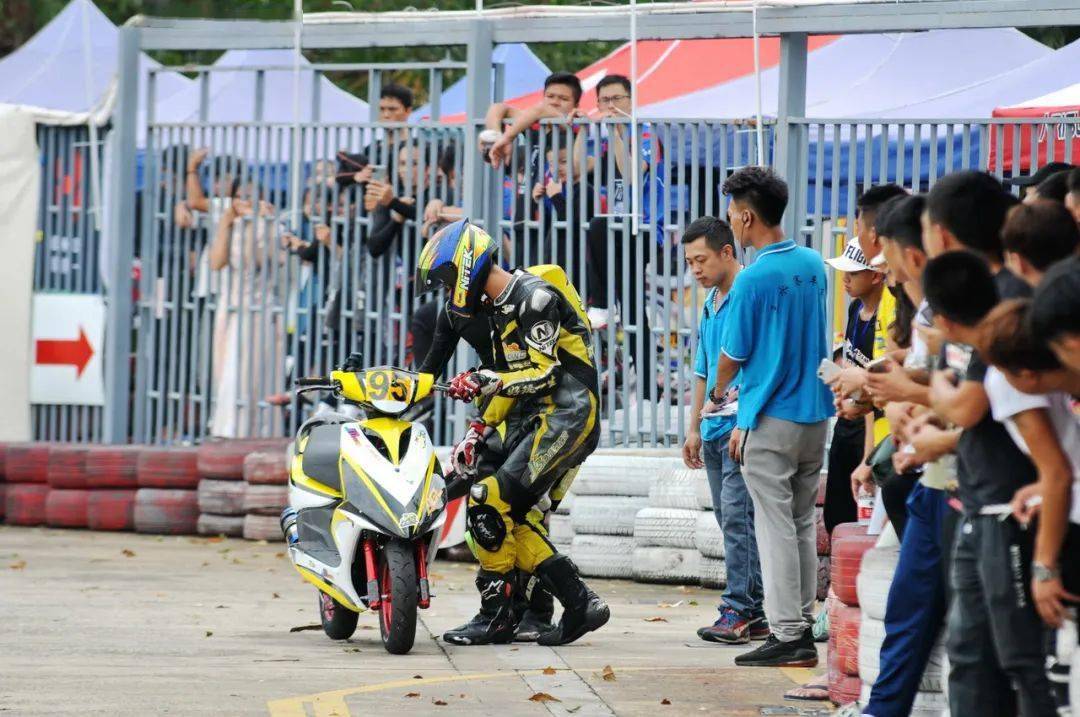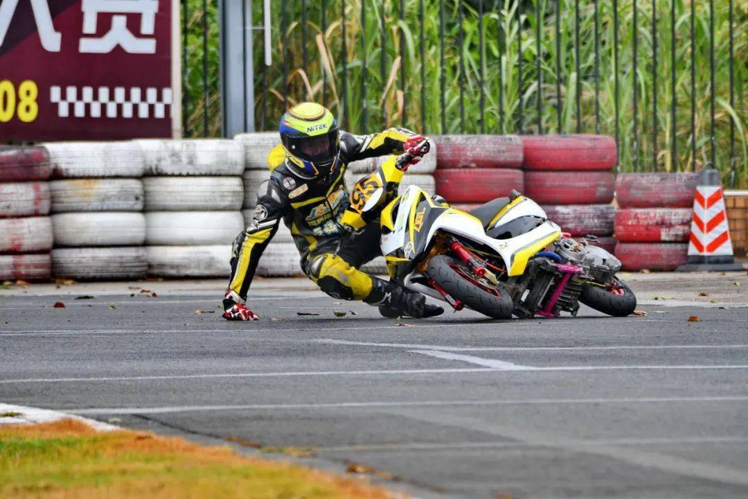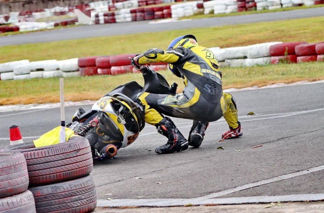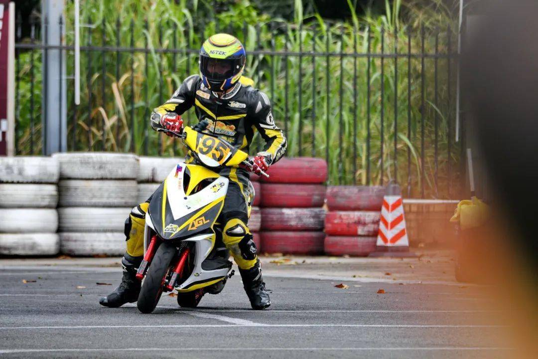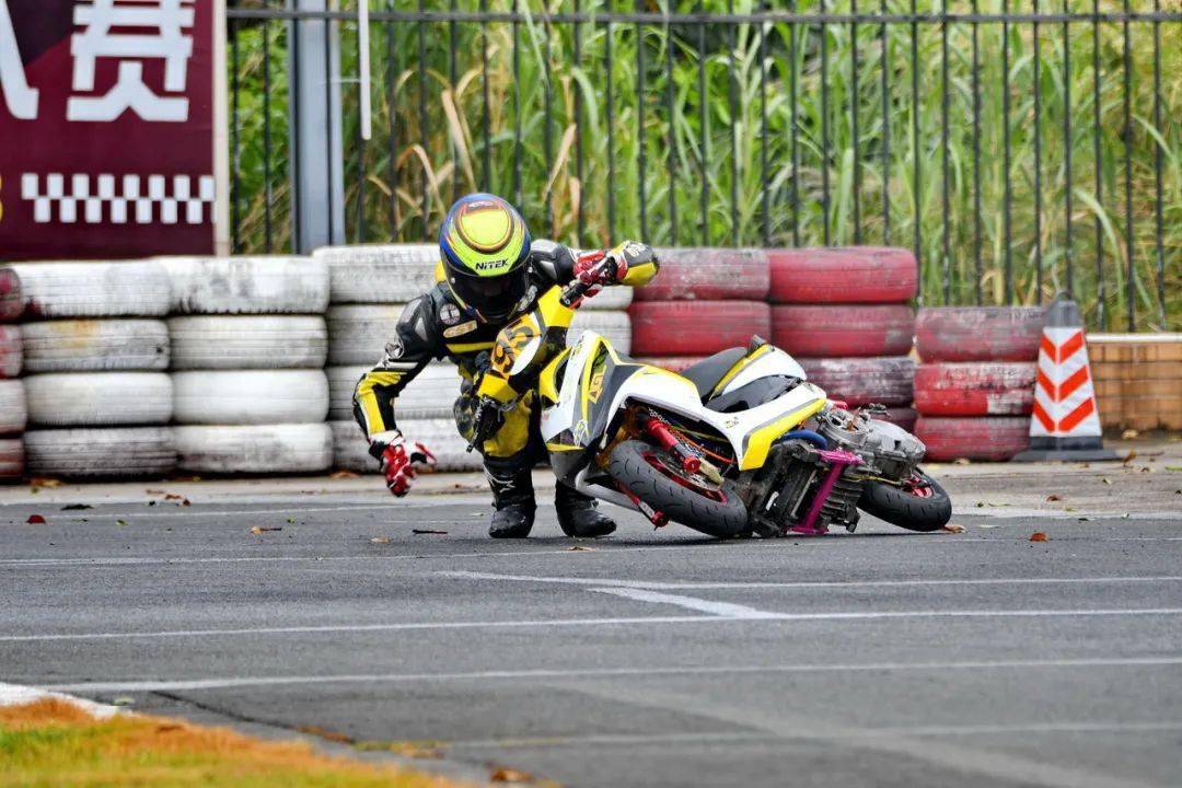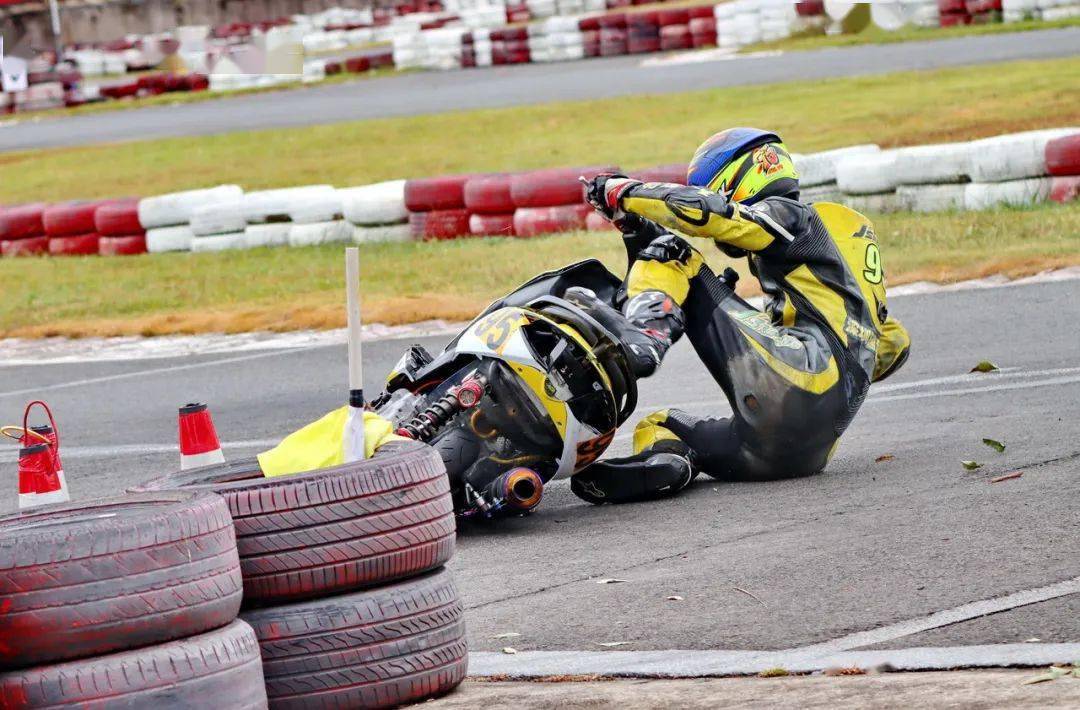 下面的圖片,艾瑞森輪胎改裝踏板 150 cc 公開(kāi)組、決賽 1(第一節(jié)比賽),駕駛 95 號(hào)車(chē)的倪天在第 2 圈的最后一個(gè)彎道摔倒。他很快就扶起賽車(chē)、并重返賽道。但到了第 9 圈,他因?yàn)橘愜?chē)故障而提前退出了比賽。