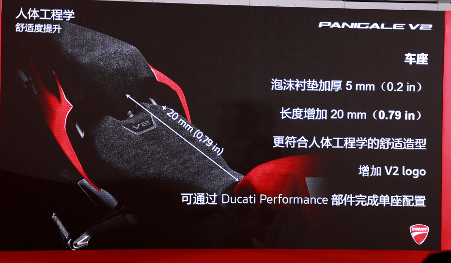 其它細(xì)節(jié)方面,Panigale V2在坐墊上進行了調(diào)整,通過新的坐墊泡沫提供給騎士更好的舒適度。同時全新的TFT全彩液晶儀表不僅有各種信息顯示,還可以根據(jù)圖像的變化快速判定所使用的駕駛模式,非常方便。