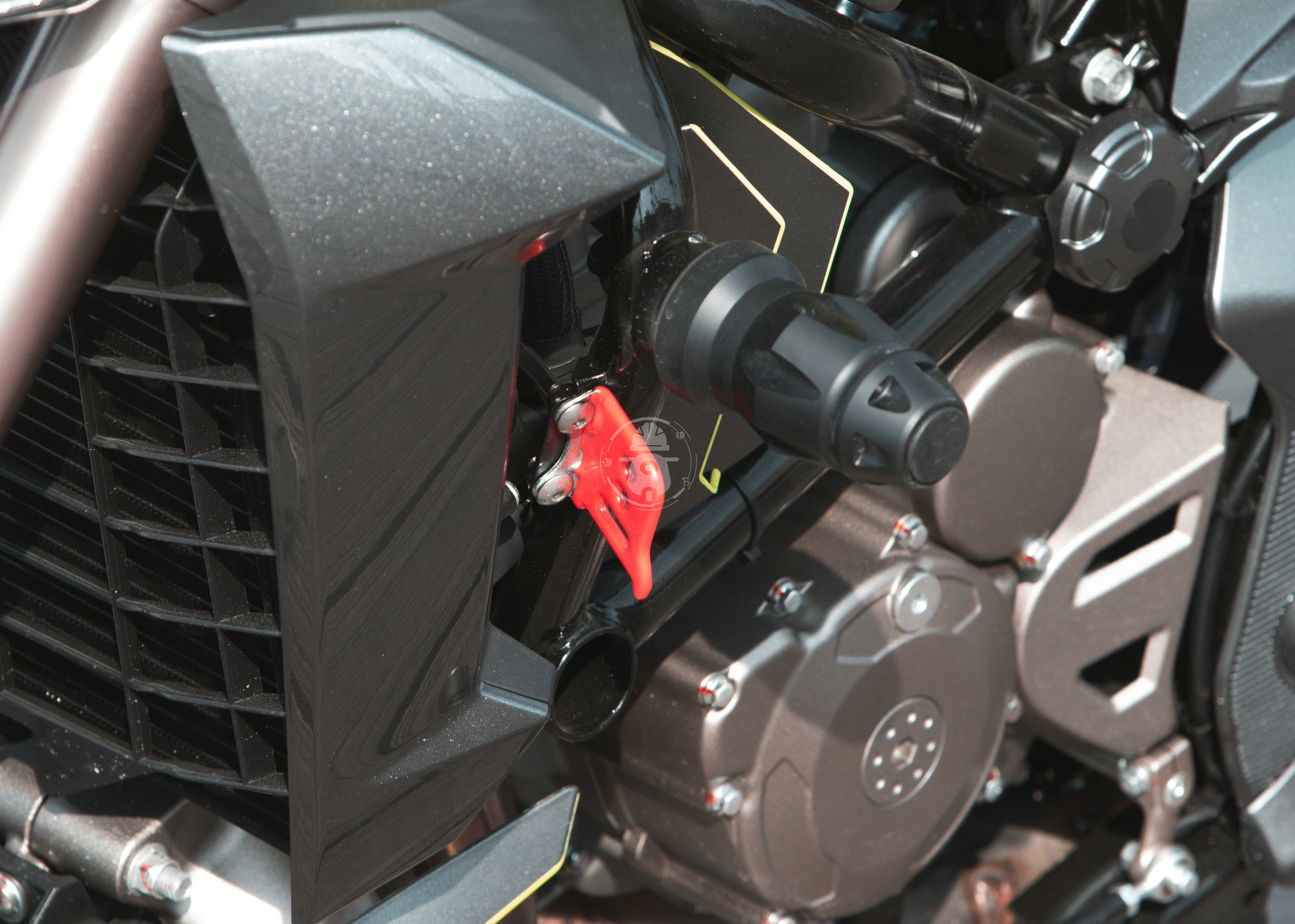 為了充分考慮騎士的方便實(shí)用,310V原廠就配備了防摔杠,而且連碟剎鎖支架這種小配件都給你安裝好了,這一點(diǎn)確實(shí)非常值得點(diǎn)贊。