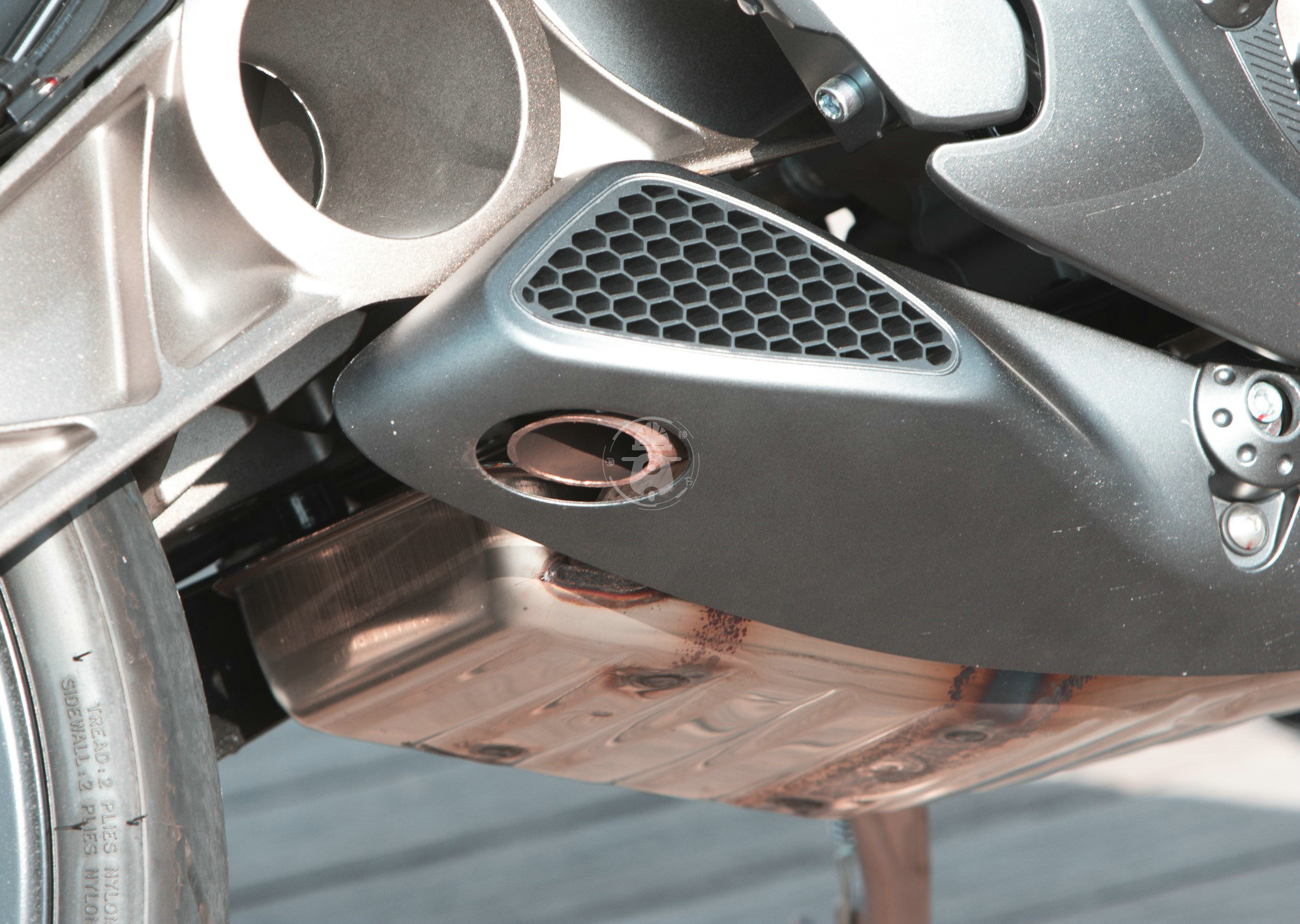 排氣管的造型是讓筆者非常驚艷的地方,能夠?qū)⑴艢怆[藏的如此之好,如果不是蜂窩狀的排氣罩,很難讓人察覺(jué)這是排氣管的位置,這種設(shè)計(jì)無(wú)疑是給車輛的整體性加分不少。