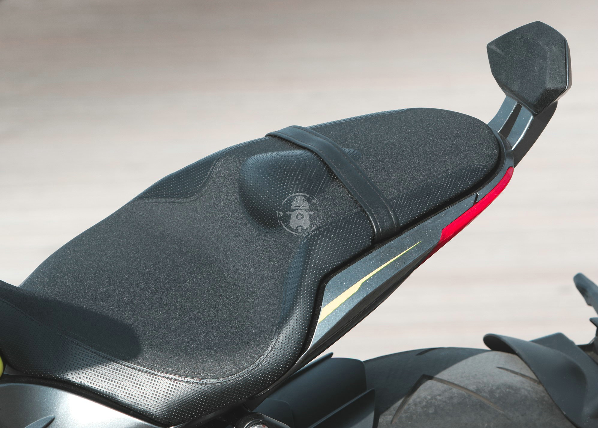 310V的坐墊依然具有極強(qiáng)的設(shè)計(jì)感,這種坐墊在國(guó)產(chǎn)摩托車上并不多見(jiàn),駕駛座的坐墊非常寬大,因?yàn)楸旧碜吆艿停?20mm),所以能夠?qū)⒆鴫|做的寬大舒適。因此后座就顯得格外嬌小,很多人擔(dān)心后座不能載人,所以升仕給其設(shè)計(jì)了小巧的后靠背,金屬材質(zhì)的支撐非常結(jié)實(shí),不用擔(dān)心乘客會(huì)中途掉下去。