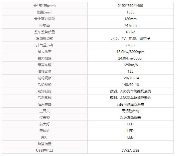 與老款車型相同,采用278cc排量的水冷四氣門電噴發(fā)動機(jī),最大功率18kW/8000rpm,最大扭矩24N.m/6500rpm,三陽宣稱百公里燃油消耗量3.29L,12L的大油箱能夠帶來350公里左右的續(xù)航水平。
